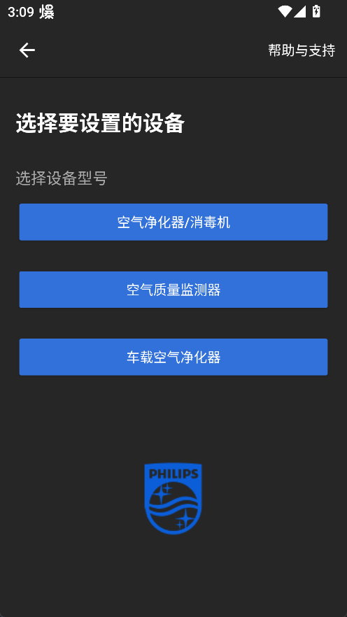 3、根据自己的设备类型,挑选需要绑定的净化器类别。