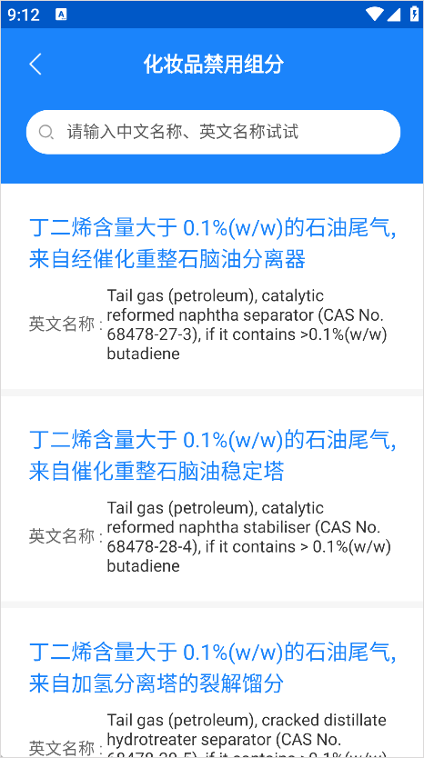 3、最后即将看到非常多的禁用组分,或者根据自己化妆品搜索即可