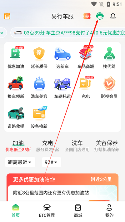 1、打开易行车服ETC软件,点击右上角客服;