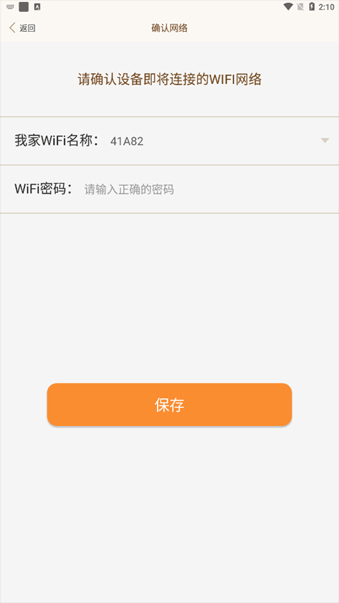 3、然后输入两个设备处于同一网络环境下的WiFi名称与密码,点击保存;