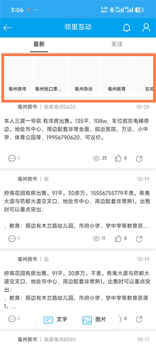 1、打开我家亳州App,点击邻里板块