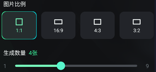 2、根据需求选择图片的比例和生成数量,点击“生成”。