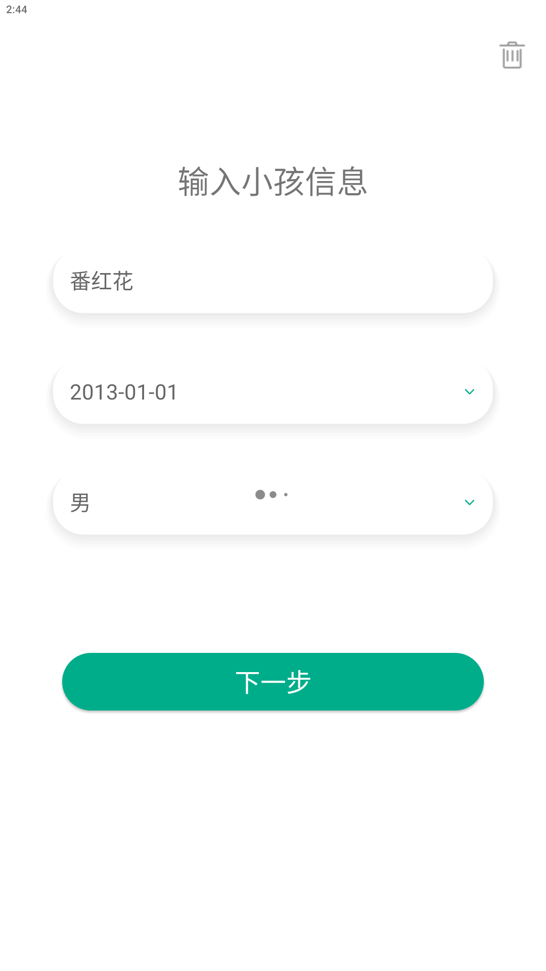 1、在本站下载安装好麦苗守护孩子端后,打开APP后会提醒输入小孩信息。