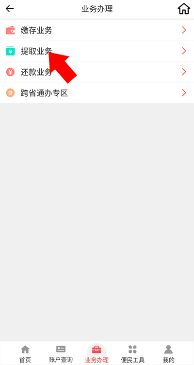1、在本站下载安装并打开吕梁公积金app,来到首页后点击下方导航栏中的业务办理选项