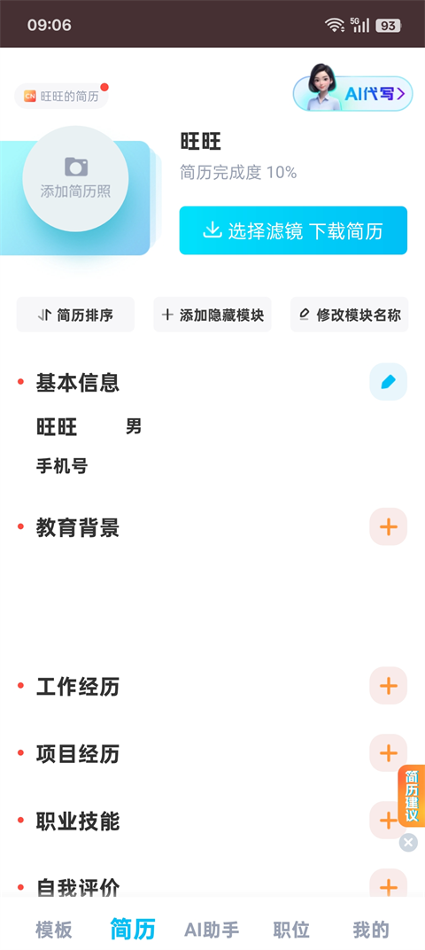 知页的电脑版与手机版的数据即时同步,独有的所见即所得简历制作方式。