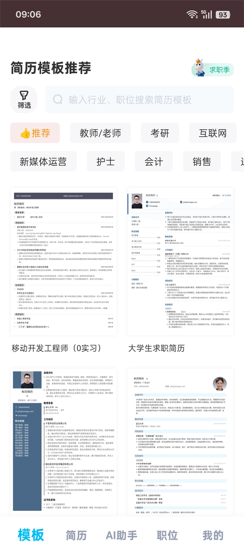 由世界500强企业HR和设计师精心制作,应届生可以反复调校出专业又高颜值的简历模板。