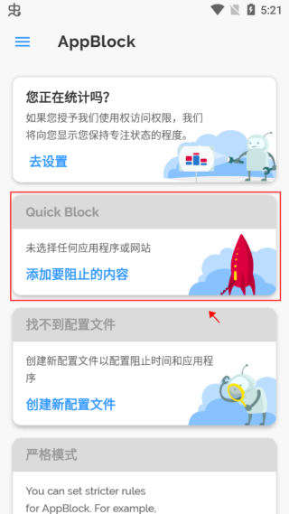 如果您不想在阻止时间内更改设置,只需使用AppBlock严格模式,这将帮助您进行自我控制。