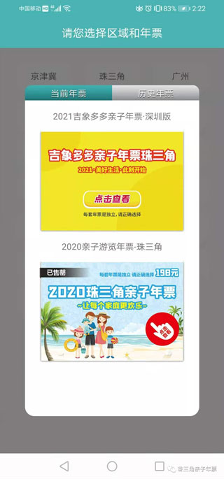 2、登录成功后在首页选择区域和年票