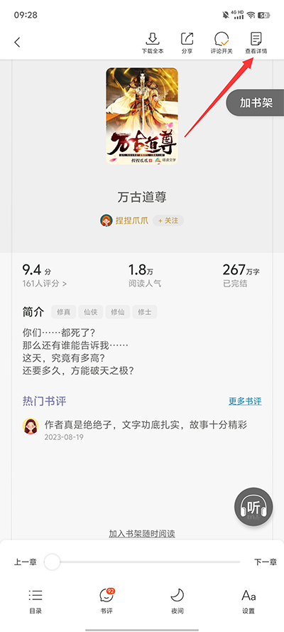 锦书app允许用户根据自己的需求设置字体大小、背景色、亮度调节等,以确保最佳的阅读舒适度,还提供了收藏夹管理、阅读进度记忆、夜间模式、听书功能等,以及一些社交互动元素,比如评论区、书友圈等,为用户提供便利、全面且具有高度沉浸感的阅读环境。