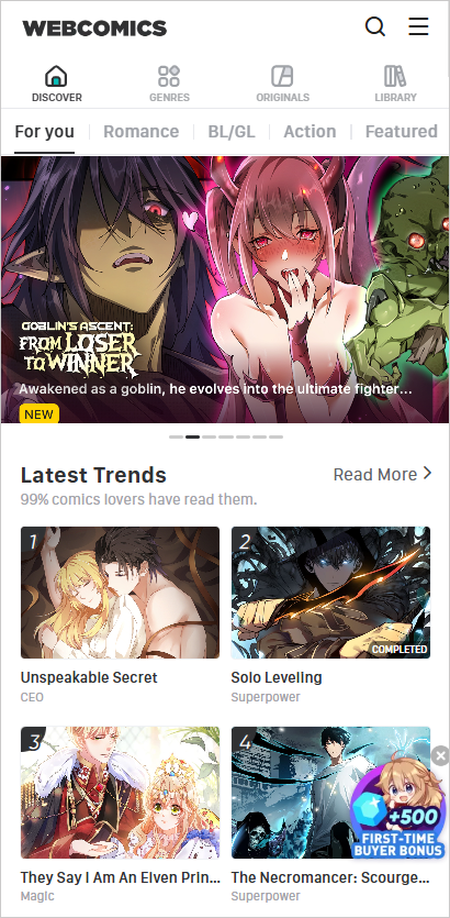 1、WebComics汇集来自全球的正版漫画内容,涵盖热血、奇幻、爱情、BL/GL、搞笑、校园、恐怖等多种题材,满足不同读者的兴趣偏好。无论是经典大作还是新锐连载,这里都能一站式查找并追更。