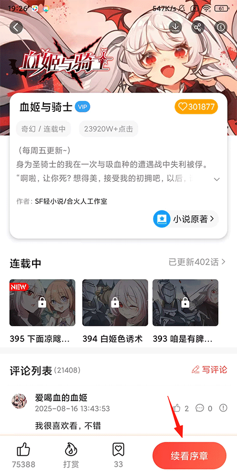 3、收藏作品更新提醒,不会错过你喜爱的作品更新哦。
