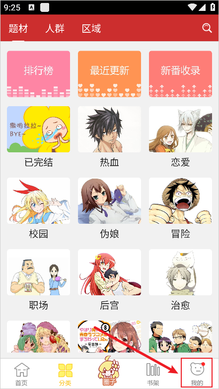 1、进入动漫屋App后点击右下角我的进入个人主页。