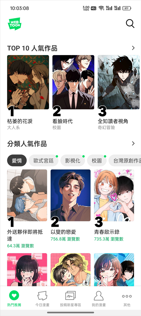 Webtoon漫画是一款由韩国WEBTOON推出的全球化漫画阅读平台,拥有海量正版漫画资源,涵盖日韩漫画、欧美漫画、国产原创等多个类别,题材覆盖爱情、热血、恐怖、奇幻、治愈等不同风格,满足不同读者的口味,用户可以免费阅读高清漫画,支持一键订阅、离线下载、评论互动、收藏管理,追更体验非常流畅。Webtoon漫画App内置了投稿功能,只要作品通过官方审核,不论你是专业漫画家还是业余爱好者,都有机会让作品上架。很多知名漫画作品就是从Webtoon平台起步,逐渐积累人气,最后走向更大的舞台。这种“人人皆可创作”的模式,也让整个社区更具活力。