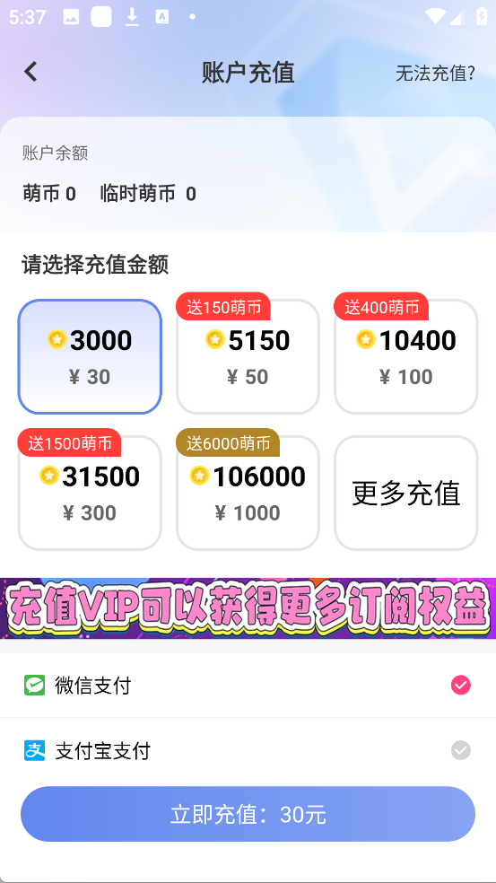 1、登录账号后,点开充值中心选择对应的充值方式即可;