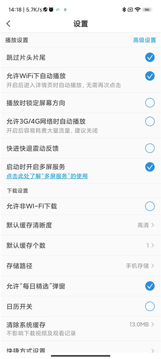 选择后自动返回,打开如下图界面,可以看到默认缓存清晰度已经设置成自己选择的了,这样就设置PP视频app下载视频的清晰度了。