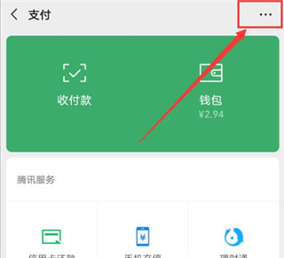 在支付页面中,点击右上角“三个点图标”,如图所示: