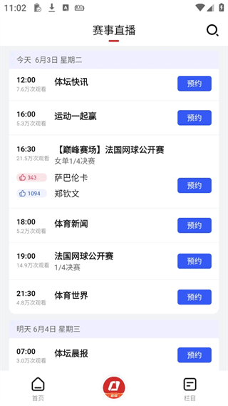 1、打开央视体育直播app,软件内如图,点击预约