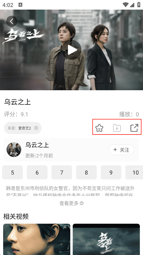 4、进入播放页开始观看,您可以对你喜欢的电影电视剧进行收藏下载分享,不过有些视频资源由于版权原因无法下载;