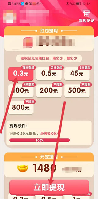 来到提现页面,点击需要提现的金额,然后点击【立即提现】注:提现前需要先绑定微信号。