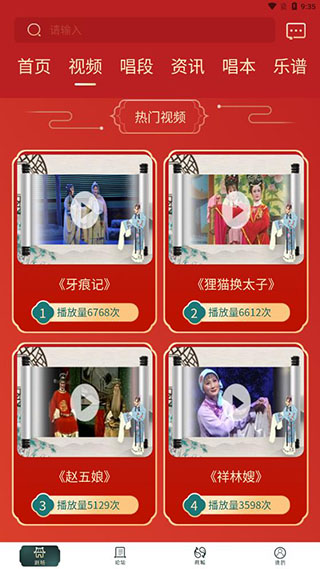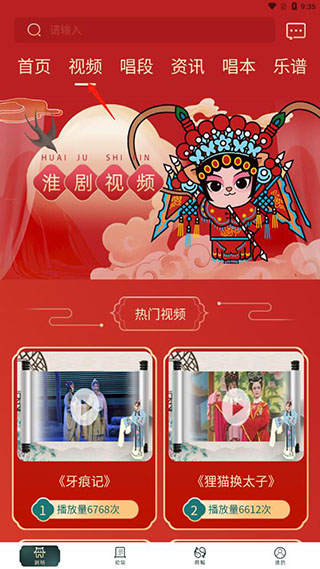 1、在剧场可以看到海量内容,视频、唱段、资讯、唱本、乐谱等;