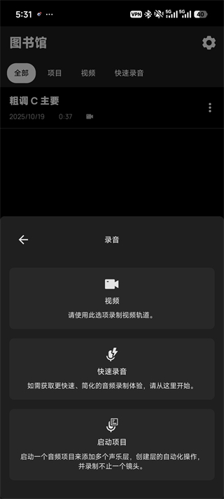 5、最后导入成功后即可使用此选项录制视频轨道等等