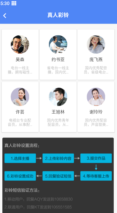 2、真人彩铃是由真人主播为你配音,用户可以定制属于自己的专属彩铃。