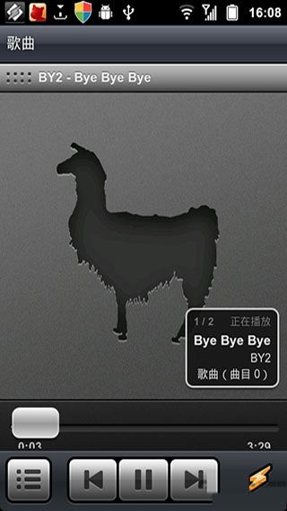 1、操作向导界面:用户第一次运行Winamp手机版后,伴随着浓厚的英文男生声音,和咩咩的羊叫声音,软件进入到了产品介绍界面。在界面左下方的是播放列表(Play Queue),而正在播放的音乐,以向上滑动形式表现。而底部靠中间的三个按钮,分别是选择上一首、下一首和播放/暂停键,用户无须标识就可认清。当然,用户触摸右下方的Winamp经典LOGO后,会转到该软件的主界面。