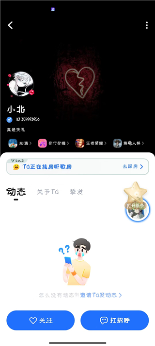 3、打开对方个人主页后进行查看,然后点击“关注”添加对方为好友。