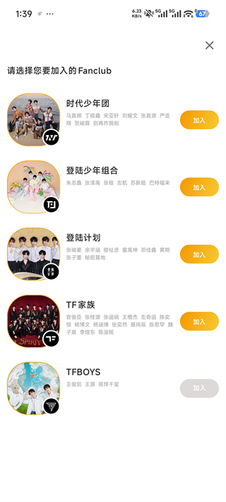 2、在Fanclub列表中找到你想加入的团体(比如时代少年团、登陆少年组合等);