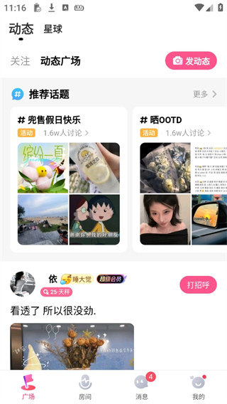 交友扩列、找搭子、直播间等等。