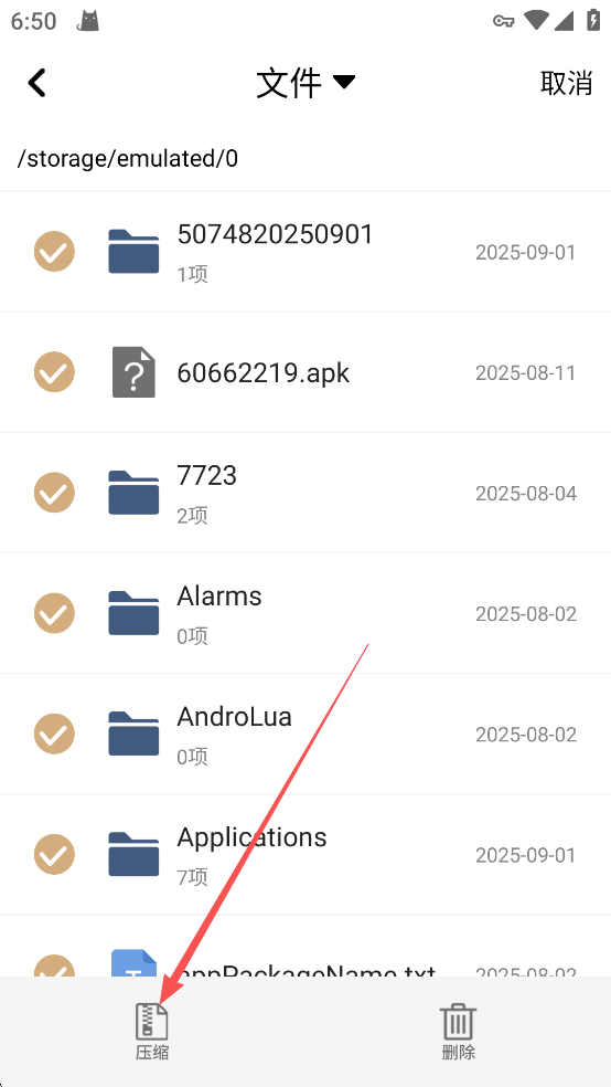 2、然后点击右上角的【选择】选中你需要压缩的文件