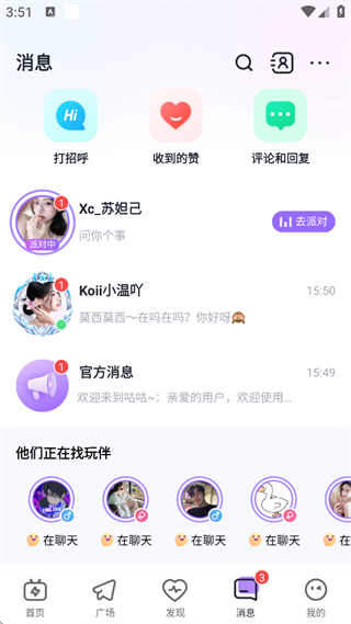 集中展示招呼、点赞、评论回复等消息,方便用户社交沟通。
