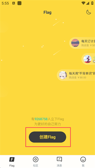 用脸疼,立Flag,它可以成为三分钟热度大克星,也可以获得围观群众的投币鼓励;用脸疼,看Flag,多多围观,多得挑战金。