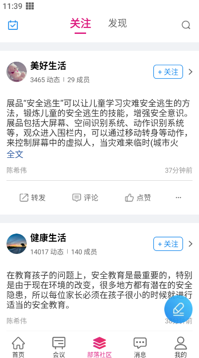 3、如果你想发布文章,在部落社区点击蓝色笔图标,填写好内容发布即可。