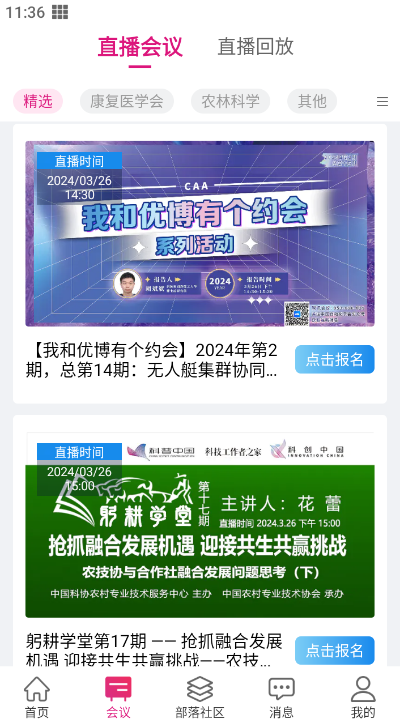 2、在会议中有着各种科技会议,用户可以找到自己感兴趣的会议报名参加,与其他科技工作者交流讨论。