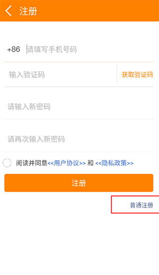 3、选择最下面的普通注册。