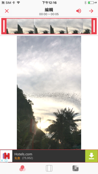 3、进入编辑预览界面,我们可以左右拖动来调整时长