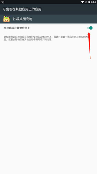 4、在弹出的设置中设置允许出现在其他应用上就可以开启桌面显示。