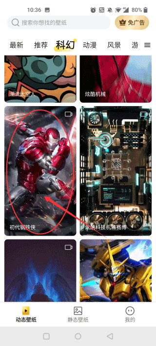 1、首先在本站下载软件,进入到软件后选择一个喜欢的壁纸。