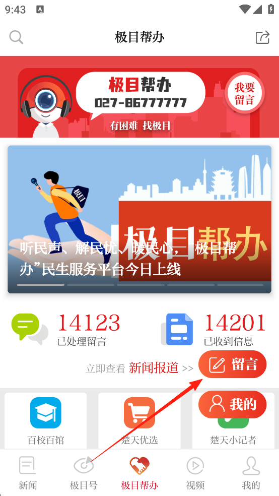 1、打开软件,登录之后,点击【极目帮办】