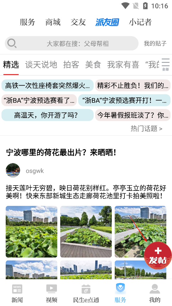 5、除了发帖以外,甬派App还能进行【交友、商城、小记者、服务、看新闻等一系列功能】