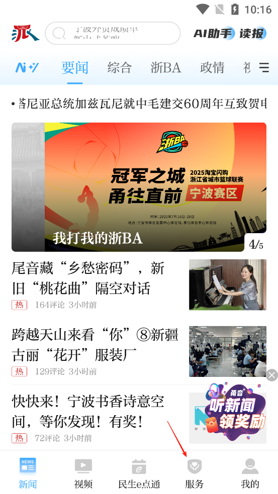 1、打开甬派App,点击服务
