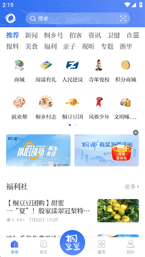 1、打开爱桐乡APP,在首页浏览搜索关于桐乡市的各种新闻资讯文章;