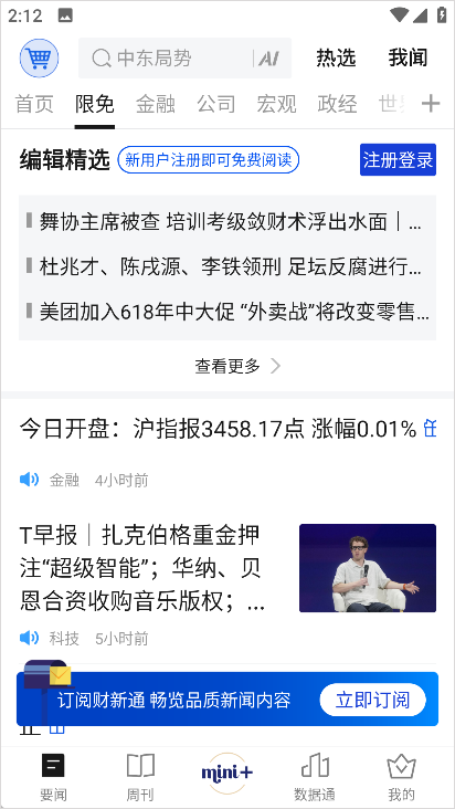 3、返回主界面,点击周刊,往上滑动可以查看更多周刊,看到喜欢的支持订阅期刊;