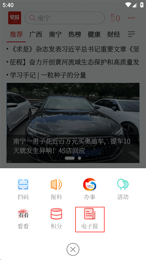 1、打开南国早报APP,点击首页-右上角的三点扩展按钮;