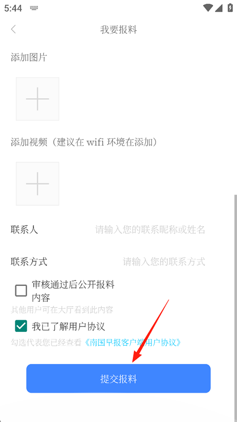 4、输入填写投稿详情,可以输入文字、上传图片、视频等文件;