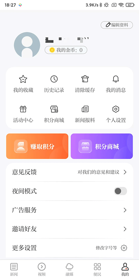 5、我的:查看收藏、消息、积分、报料等个人设置。