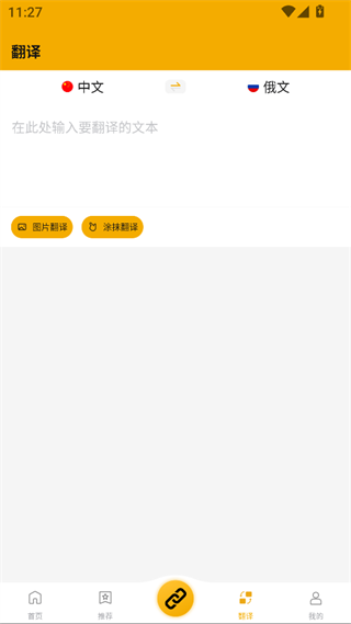 提供语言翻译功能,支持中文与俄文互译及图片翻译、涂抹翻译。