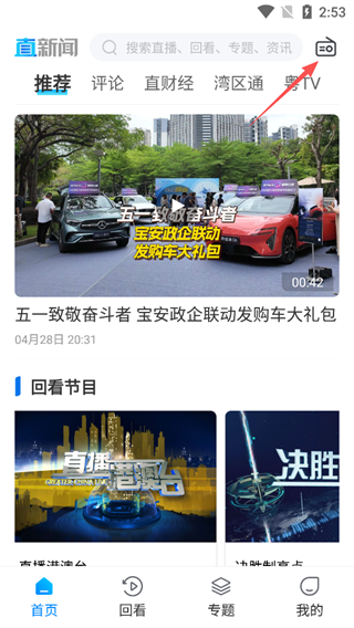 1、打开直新闻官方版App,点击右上角的【收音机图标】