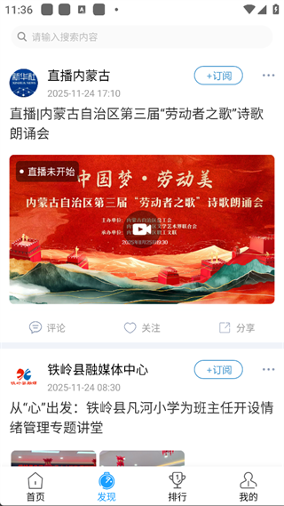展示入驻机构的态报道,支持订阅、评论互动,是用户获取实时内容的核心入口。